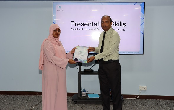 މިނިސްޓްރީއާއި މިނިސްޓްރީގެ ދަށުން ހިނގާ އޮފީސްތަކުގެ މުވައްޒަފުންނަށް ބޭއްވުނު ޕްރެޒެންޓޭޝަން ސްކިލްސް ޓްރޭނިންގ